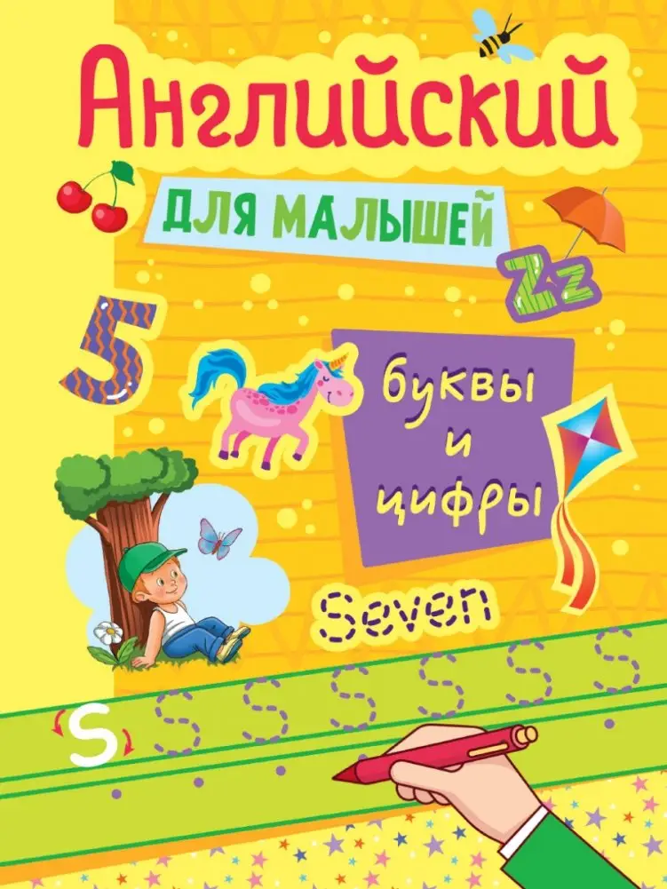This educational resource is designed to introduce young learners to the English alphabet and basic numbers. It provides a foundational approach to early language acquisition, focusing on visual recognition and simple association.