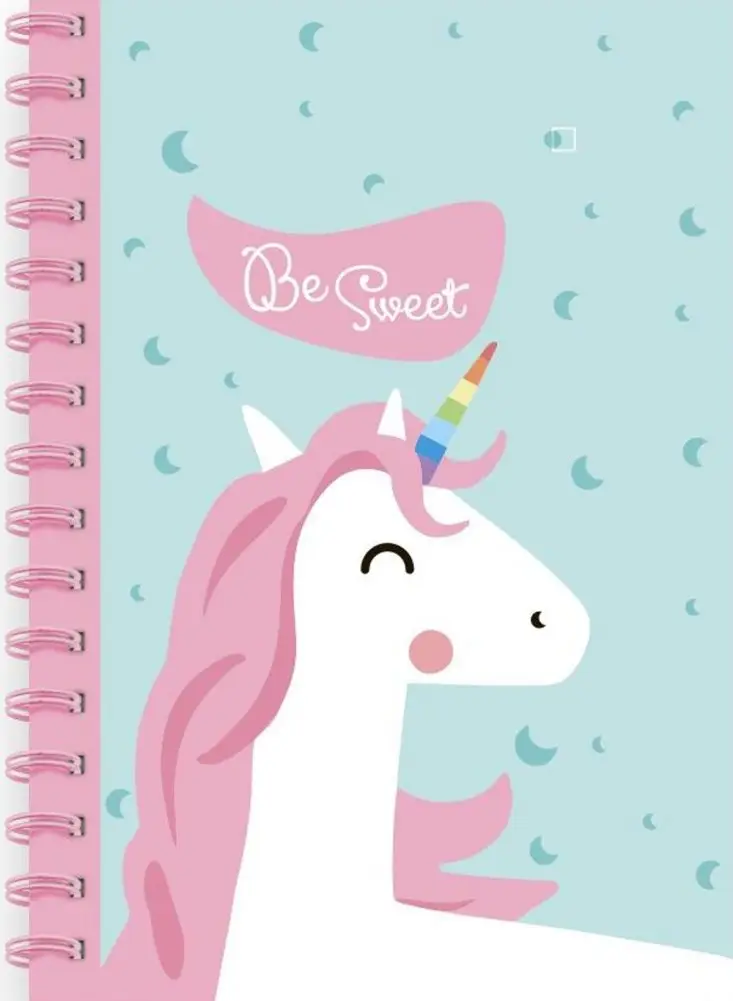 This stylish A5 notebook features a unicorn theme, making it a distinctive choice for stationery. It contains 80 sheets with a grid ruling, suitable for notes and sketches. The colored page edges complement the pink spiral binding, adding a unique touch. A durable cardboard cover ensures longevity and maintains the notebook's shape.
