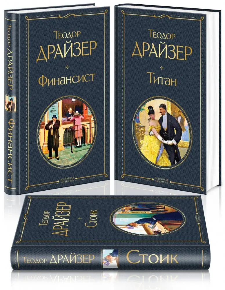 This three-book set features Theodore Dreiser's renowned novels: "The Financier", "The Titan", and "The Stoic". Together, they form the "Trilogy of Desire", a sweeping narrative chronicling the ambitious career of financier Frank Cowperwood. The epic is inspired by the life of the real Chicago millionaire Charles Yerkes. The trilogy vividly portrays the world of big business, financial schemes, and the opulent lifestyles of tycoons.
