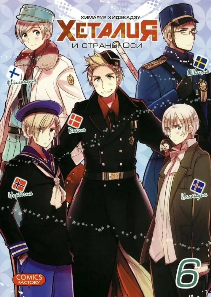 Volume 6 of the "Hetalia: Axis Powers" manga explores the events of World War I and World War II, as well as the pre-war and post-war periods. The narrative unfolds through the interactions of characters, each representing a different country. This installment features approximately 40 countries and their corresponding 40 personified characters.