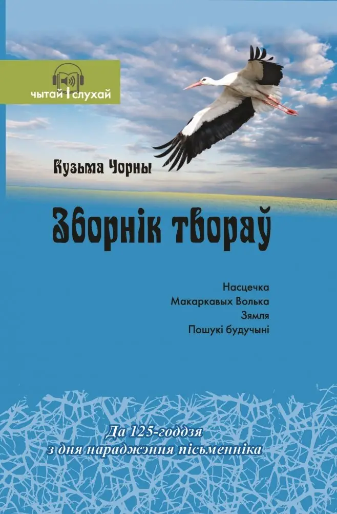 A collection of works by Kuzma Chorny, dedicated to the 125th anniversary of the writer's birth (1900–1944). It includes 'Nastechka', 'Makarkavykh Volka', 'Zemlya', 'Poshuki buduchyni', which affirm the humanistic idea of the great strength of man and the beauty of ordinary people. The author focuses on mercy and compassion, raises the problems of parents and children, and also describes folk customs and Belarusian nature. Each work contains QR codes to audio recordings.