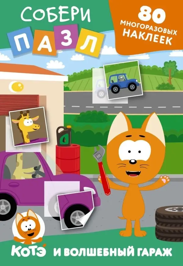 Многоразовые наклейки: собери пазл! Котёнок Котэ и Волшебный гараж