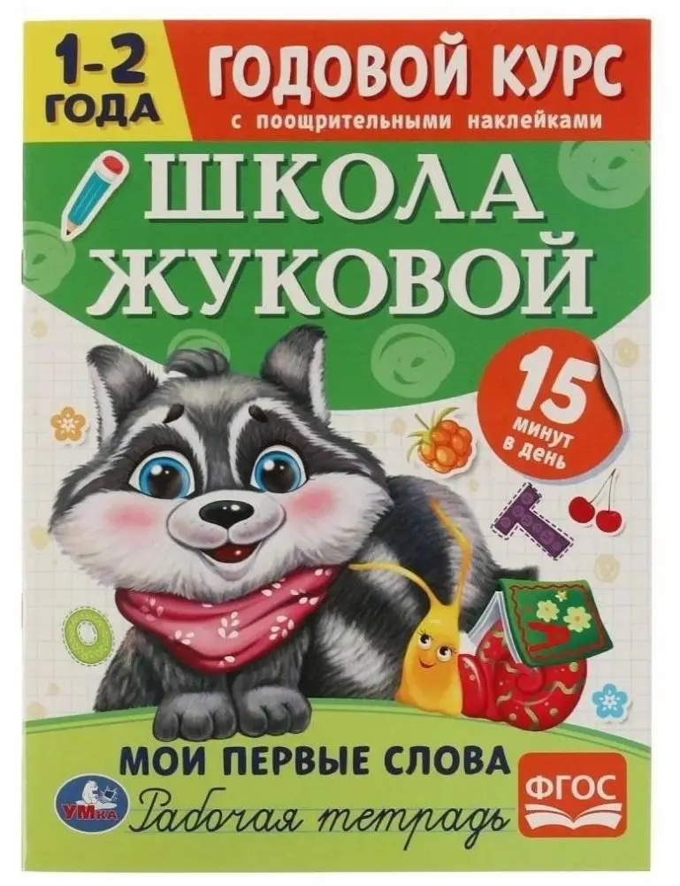 The "My First Words" workbook offers a year-long course designed for toddlers aged 1 to 2 years. It focuses on expanding a child's vocabulary through a set of exercises. Vibrant illustrations and engaging activities make learning enjoyable. Daily 15-minute sessions aid in developing motor skills, sensory perception, attention, thinking, logic, speech, and memory. Reward stickers serve as encouragement and a way to praise a child's achievements.