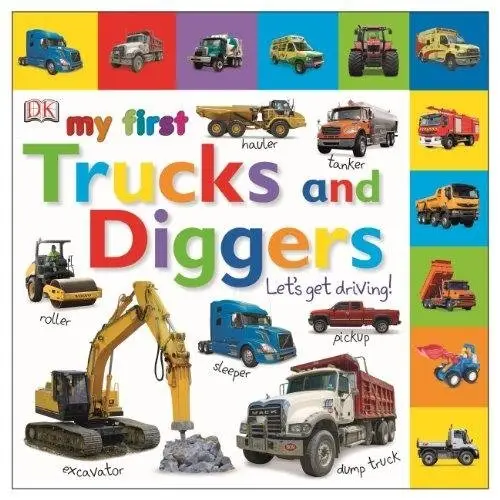 This engaging board book introduces young children to the exciting world of trucks and diggers. It encourages interaction and learning about different vehicles. The sturdy pages are designed for little hands, making it a durable choice for early exploration.