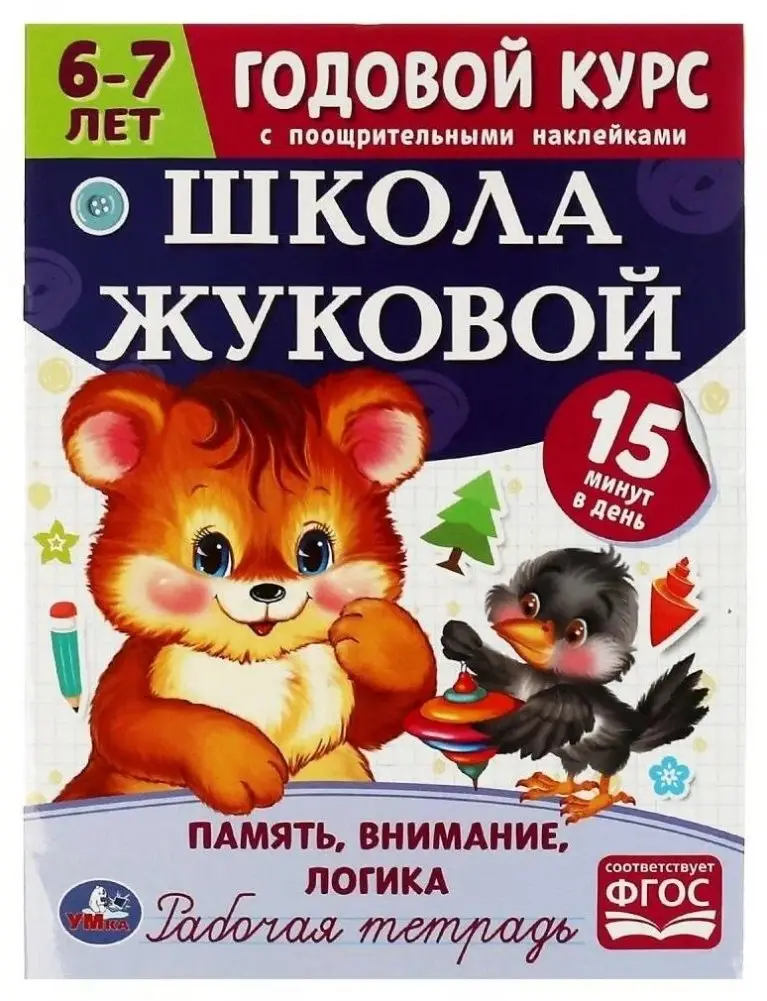 Π Π°Π±ΠΎΡΠ°Ρ ΡΠ΅ΡΡΠ°Π΄Ρ Β«ΠΠΎΠ΄ΠΎΠ²ΠΎΠΉ ΠΊΡΡΡ, 6-7 Π»Π΅Ρ. ΠΠ°ΠΌΡΡΡ, Π²Π½ΠΈΠΌΠ°Π½ΠΈΠ΅, Π»ΠΎΠ³ΠΈΠΊΠ°Β» ΠΏΡΠ΅Π΄Π½Π°Π·Π½Π°ΡΠ΅Π½Π° Π΄Π»Ρ ΡΠ°Π·Π²ΠΈΡΠΈΡ ΠΊΠ»ΡΡΠ΅Π²ΡΡ ΠΊΠΎΠ³Π½ΠΈΡΠΈΠ²Π½ΡΡ Π½Π°Π²ΡΠΊΠΎΠ² Ρ Π΄Π΅ΡΠ΅ΠΉ. ΠΠ½Π° ΠΏΡΠ΅Π΄Π»Π°Π³Π°Π΅Ρ ΠΊΠΎΠΌΠΏΠ»Π΅ΠΊΡ ΡΠΏΡΠ°ΠΆΠ½Π΅Π½ΠΈΠΉ, ΡΡΠΈΠΌΡΠ»ΠΈΡΡΡΡΠΈΡ ΡΠΌΠ΅ΠΊΠ°Π»ΠΊΡ, ΠΌΡΡΠ»Π΅Π½ΠΈΠ΅ ΠΈ ΡΠΏΠΎΡΠΎΠ±Π½ΠΎΡΡΡ Π½Π°Ρ ΠΎΠ΄ΠΈΡΡ ΡΠ΅ΡΠ΅Π½ΠΈΡ Π·Π°Π΄Π°Ρ. ΠΠ°Π½ΡΡΠΈΡ ΠΏΠΎ 15 ΠΌΠΈΠ½ΡΡ Π² Π΄Π΅Π½Ρ ΡΠΏΠΎΡΠΎΠ±ΡΡΠ²ΡΡΡ ΡΠ°Π·Π²ΠΈΡΠΈΡ ΠΌΠΎΡΠΎΡΠΈΠΊΠΈ, ΡΠ΅Π½ΡΠΎΡΠΈΠΊΠΈ, ΠΌΡΡΠ»Π΅Π½ΠΈΡ ΠΈ ΡΠ΅ΡΠΈ. Π―ΡΠΊΠΈΠ΅ ΠΈΠ»Π»ΡΡΡΡΠ°ΡΠΈΠΈ ΠΈ ΠΏΠΎΠΎΡΡΠΈΡΠ΅Π»ΡΠ½ΡΠ΅ Π½Π°ΠΊΠ»Π΅ΠΉΠΊΠΈ ΠΏΠΎΠΌΠΎΠ³Π°ΡΡ ΠΏΠΎΠ΄Π΄Π΅ΡΠΆΠΈΠ²Π°ΡΡ ΠΈΠ½ΡΠ΅ΡΠ΅Ρ ΡΠ΅Π±Π΅Π½ΠΊΠ° ΠΊ ΠΎΠ±ΡΡΠ΅Π½ΠΈΡ.