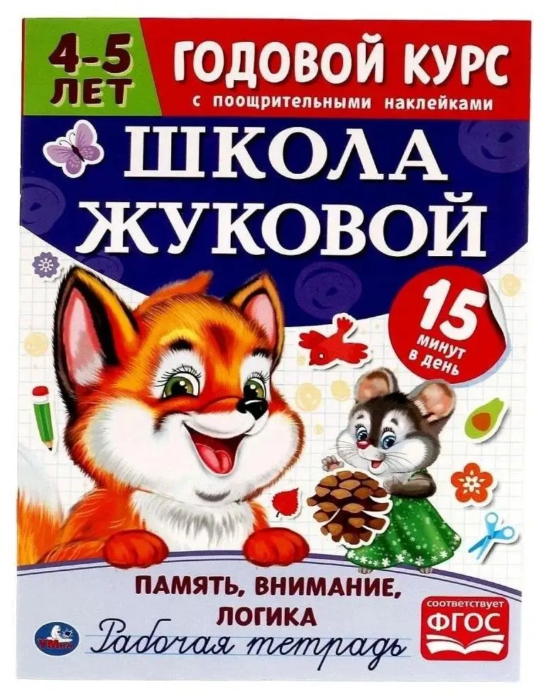 ΠΡΠ° ΡΠ°Π±ΠΎΡΠ°Ρ ΡΠ΅ΡΡΠ°Π΄Ρ ΠΏΡΠ΅Π΄Π»Π°Π³Π°Π΅Ρ ΠΊΠΎΠΌΠΏΠ»Π΅ΠΊΡ ΡΠΏΡΠ°ΠΆΠ½Π΅Π½ΠΈΠΉ, Π½Π°ΠΏΡΠ°Π²Π»Π΅Π½Π½ΡΡ Π½Π° ΡΠ°Π·Π²ΠΈΡΠΈΠ΅ ΠΏΠ°ΠΌΡΡΠΈ, Π²Π½ΠΈΠΌΠ°Π½ΠΈΡ ΠΈ Π»ΠΎΠ³ΠΈΡΠ΅ΡΠΊΠΎΠ³ΠΎ ΠΌΡΡΠ»Π΅Π½ΠΈΡ Ρ Π΄Π΅ΡΠ΅ΠΉ 4-5 Π»Π΅Ρ. ΠΠ°Π½ΡΡΠΈΡ ΠΏΠΎΡΡΡΠΎΠ΅Π½Ρ Π² ΡΠΎΡΠΌΠ°ΡΠ΅ Π³ΠΎΠ΄ΠΎΠ²ΠΎΠ³ΠΎ ΠΊΡΡΡΠ° ΠΈ ΡΠ°Π·ΡΠ°Π±ΠΎΡΠ°Π½Ρ Ρ ΡΡΠ΅ΡΠΎΠΌ Π€Π΅Π΄Π΅ΡΠ°Π»ΡΠ½ΠΎΠ³ΠΎ Π³ΠΎΡΡΠ΄Π°ΡΡΡΠ²Π΅Π½Π½ΠΎΠ³ΠΎ ΠΎΠ±ΡΠ°Π·ΠΎΠ²Π°ΡΠ΅Π»ΡΠ½ΠΎΠ³ΠΎ ΡΡΠ°Π½Π΄Π°ΡΡΠ° (Π€ΠΠΠ‘). ΠΡΠ°ΡΠΎΡΠ½ΡΠ΅ ΠΈΠ»Π»ΡΡΡΡΠ°ΡΠΈΠΈ ΠΈ ΠΈΠ½ΡΠ΅ΡΠ΅ΡΠ½ΡΠ΅ Π·Π°Π΄Π°Π½ΠΈΡ Π΄Π΅Π»Π°ΡΡ ΠΏΡΠΎΡΠ΅ΡΡ ΠΎΠ±ΡΡΠ΅Π½ΠΈΡ ΡΠ²Π»Π΅ΠΊΠ°ΡΠ΅Π»ΡΠ½ΡΠΌ, Π° ΠΏΠΎΠΎΡΡΠΈΡΠ΅Π»ΡΠ½ΡΠ΅ Π½Π°ΠΊΠ»Π΅ΠΉΠΊΠΈ ΠΏΠΎΠΌΠΎΠ³Π°ΡΡ ΠΏΠΎΠ΄Π΄Π΅ΡΠΆΠΈΠ²Π°ΡΡ ΠΌΠΎΡΠΈΠ²Π°ΡΠΈΡ ΡΠ΅Π±Π΅Π½ΠΊΠ°. Π Π΅ΠΊΠΎΠΌΠ΅Π½Π΄ΡΠ΅ΡΡΡ Π·Π°Π½ΠΈΠΌΠ°ΡΡΡΡ ΠΏΠΎ 15 ΠΌΠΈΠ½ΡΡ Π² Π΄Π΅Π½Ρ, ΡΠ΄Π΅Π»ΡΡ Π²Π½ΠΈΠΌΠ°Π½ΠΈΠ΅ ΠΏΠΎΡ Π²Π°Π»Π΅ Π·Π° ΡΡΠΏΠ΅Ρ ΠΈ.