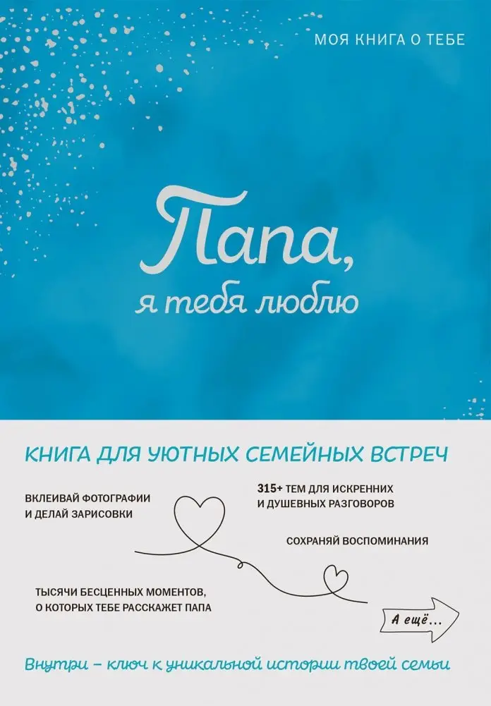 Эта книга предназначена для создания уютных семейных встреч, помогая раскрыть уникальную историю вашей семьи. Она содержит более 310 тем, способствующих искренним и душевным беседам между отцом и ребенком. Через эти разговоры можно узнать о тысячах ценных моментов из жизни отца. Книга также предоставляет страницы для записи воспоминаний и вклеивания фотографий, способствуя укреплению связи поколений.