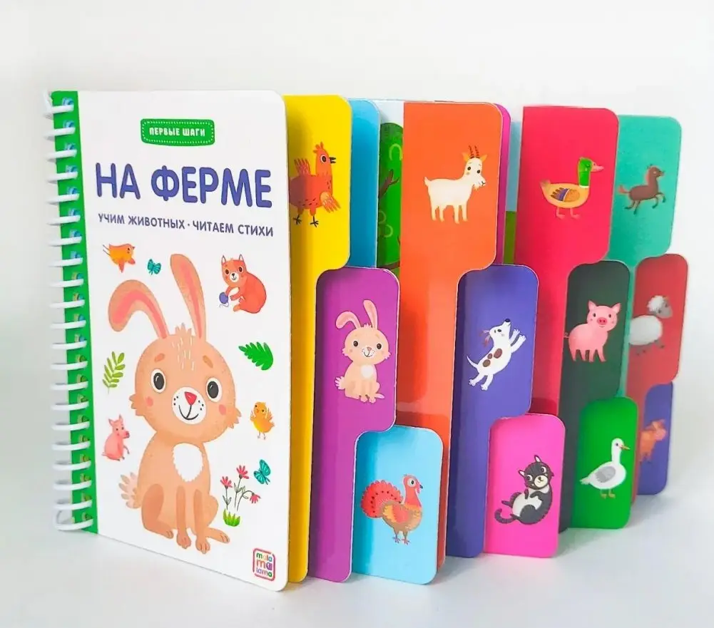 The 'On the Farm' book from the 'First Steps' series combines a classic approach with a modern format. Simple rhymes and colorful illustrations help children learn about farm animals and their names. Die-cut pages offer an opportunity to practice fine motor skills, making learning engaging and fun.
