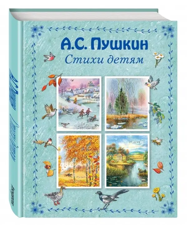 This volume gathers the most famous nature‑ and season‑themed poems by the great Russian poet Alexander Pushkin. The collection is designed to foster a love of poetry among school‑age children and serves as a handy resource for selecting and memorising verses for school celebrations and events. Printed in a large, gift‑style format, each spread features vivid illustrations by V. Kanivets that complement the verses. Published in 2020 by Eksmo, the hardcover edition belongs to the "Poems and Fairy Tales for Children (gift editions)" series and contains 64 pages of Russian‑language poetry.