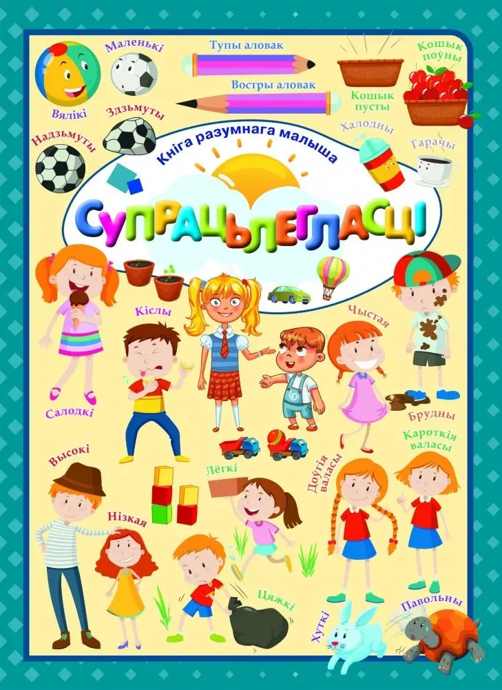 This 16‑page softcover book from the "Детская литература" series introduces young readers to the concept of opposites through bright illustrations and simple text. Published by Harvest in 2018, it is designed for early childhood development, encouraging vocabulary expansion and visual discrimination. The lightweight format (54 g) makes it easy for small hands to handle. It is suitable for use at home, in preschool, or in early‑grade classrooms.